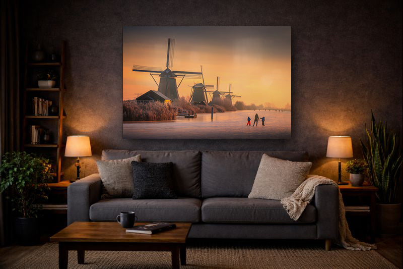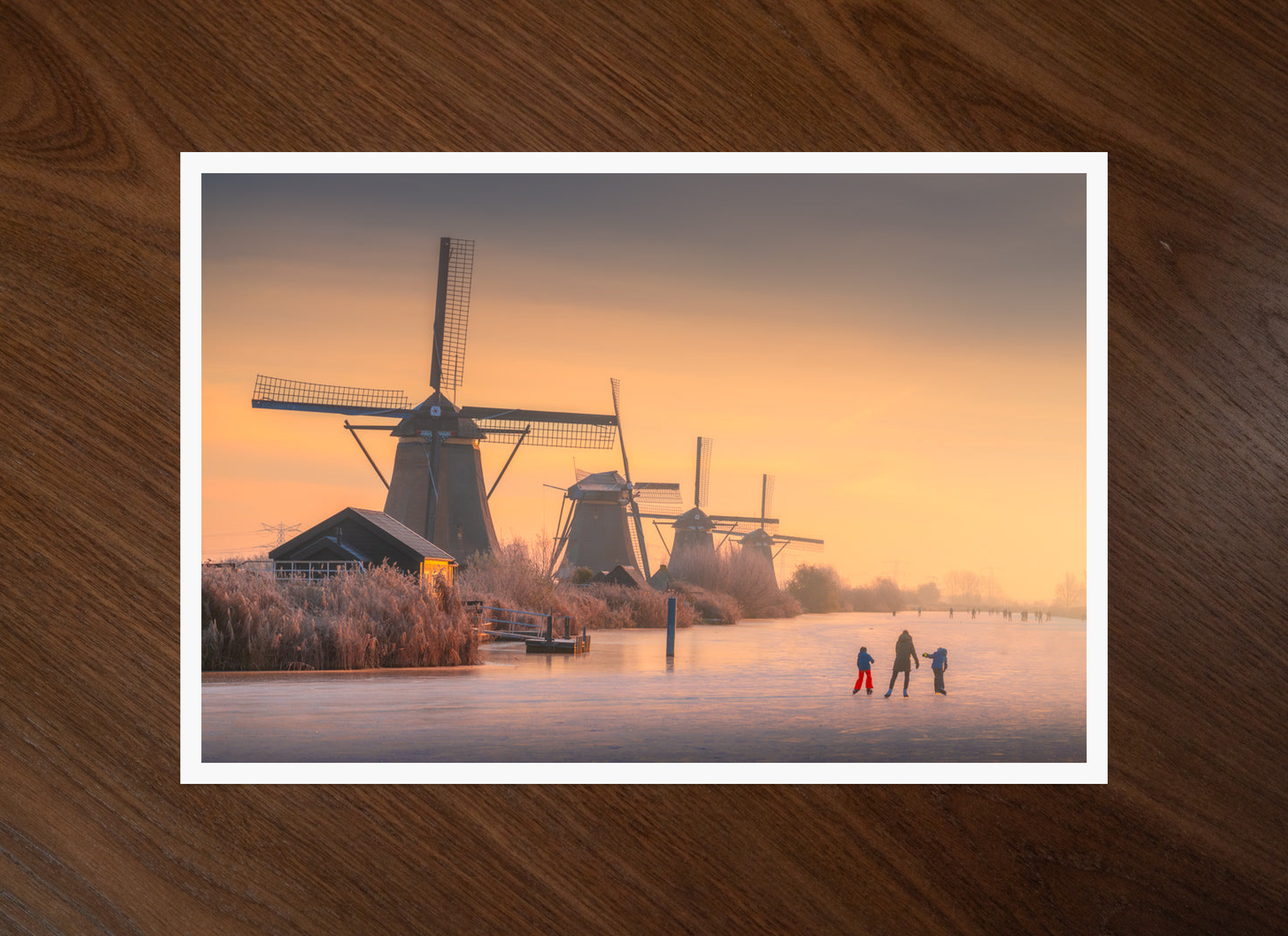 It was a freezing morning after the whole week of frost at night. Finally the waters around the famous Kinderwijk windmill froze and the first people ventured on the ice. Yes, there were cracking sounds, but the ice held well. More and more people entered the ice and the morning slowly started to turn into a cozy ice skating paradise.